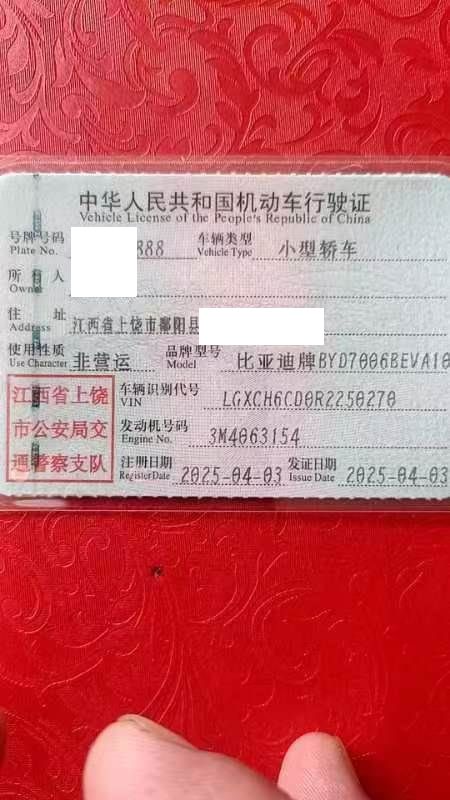 车牌号 赣****** 品牌 比亚迪