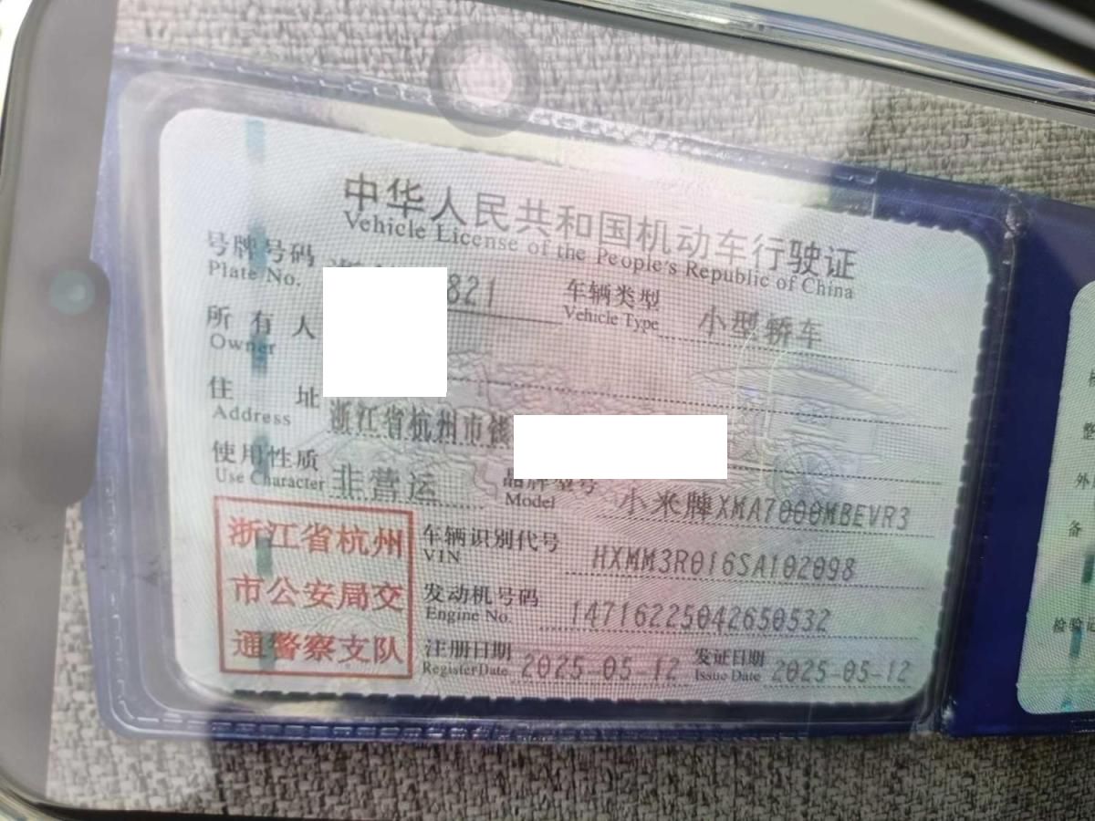 初次登记日期 2025-05-12 车辆名称 小米汽车 小米SU7