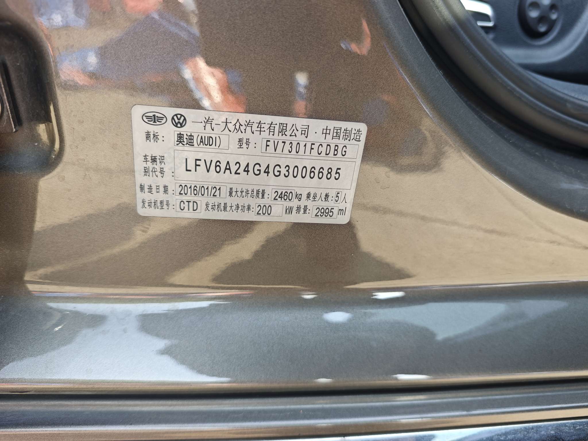 初次登记日期 2016-05-25 车辆名称 奥迪A6L