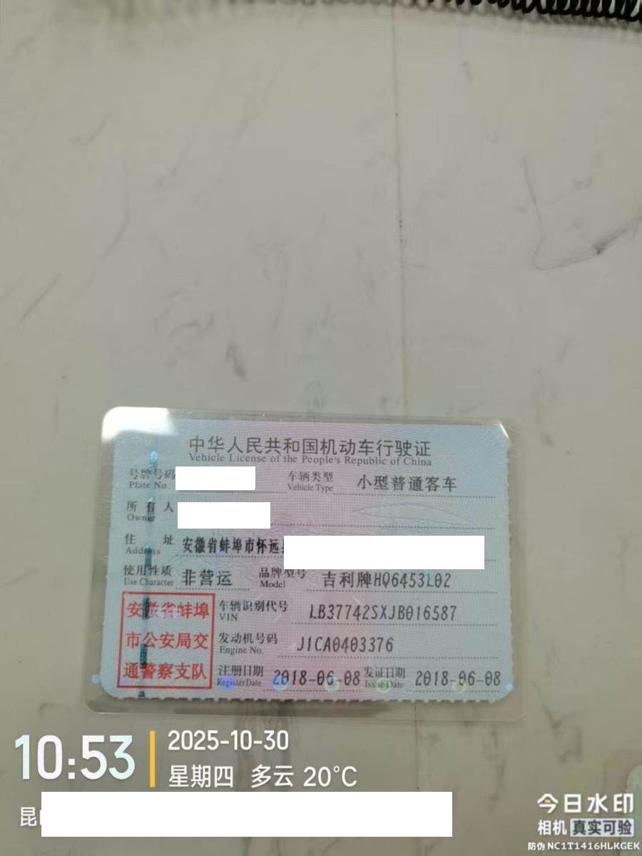 初次登记日期 2018-06-08 车辆名称 吉利汽车
