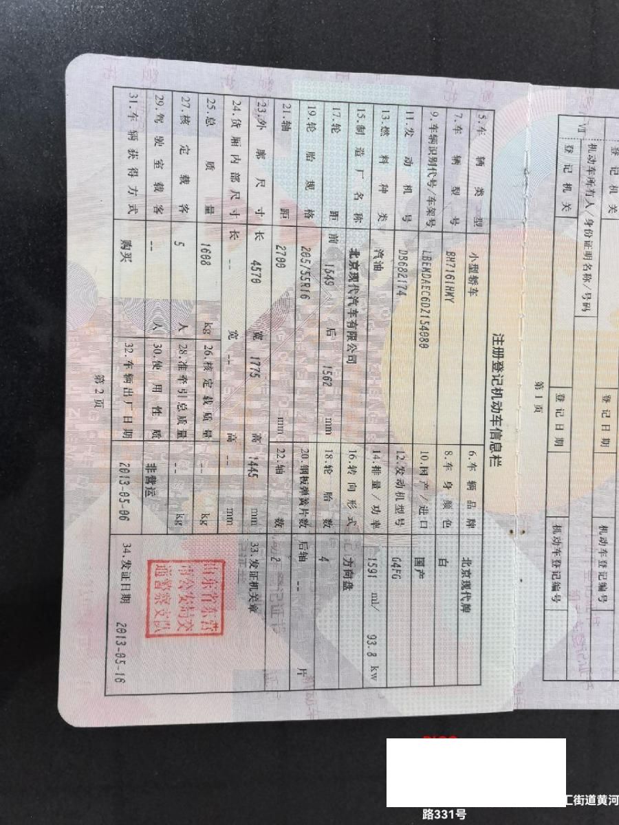 初次登记日期 2013-05-06 车辆名称 现代 朗动