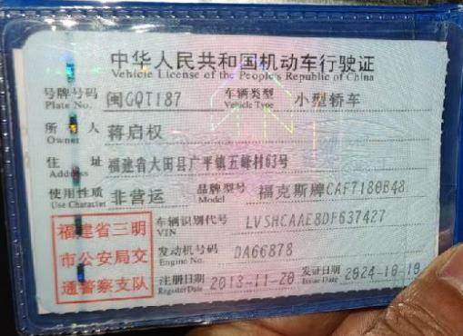 车辆归属地 福建省三明市 车辆停放仓库 福建省泉州市泉州市