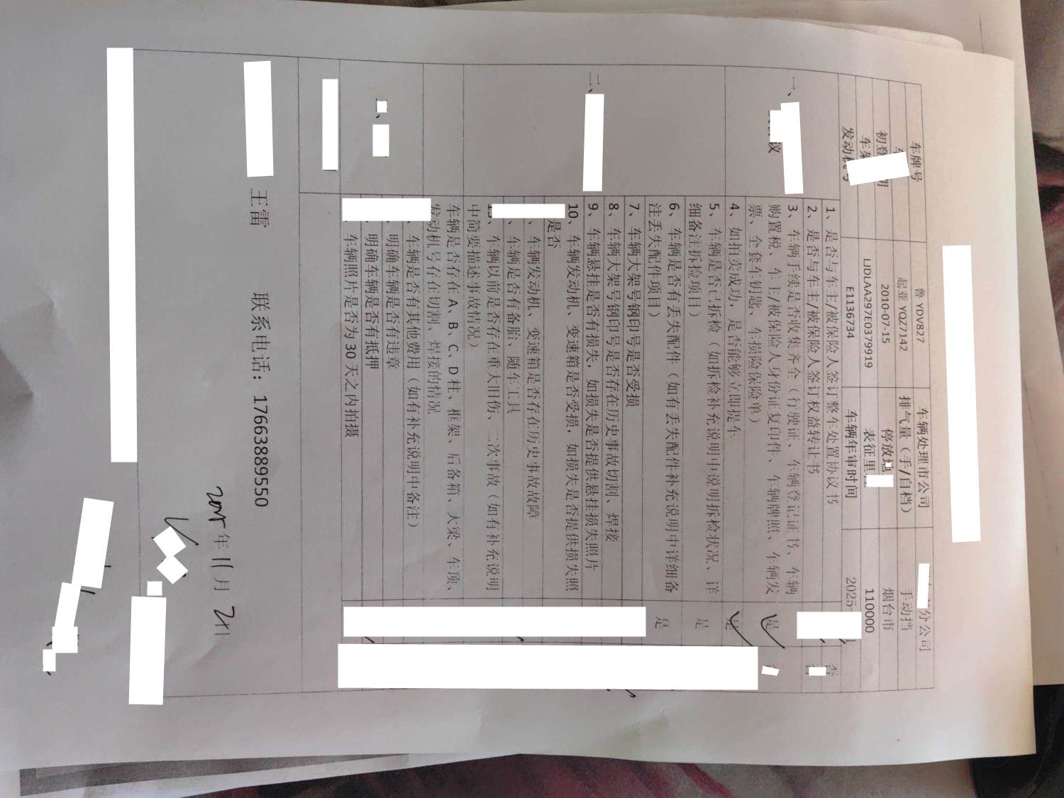 车架号是否受损 使用性质 非营运