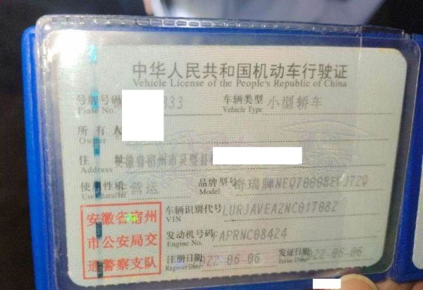 车牌号 皖****** 品牌 奇瑞