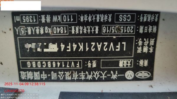 底盘号码 LFV2A21K4F4103224 变速箱类型 自动