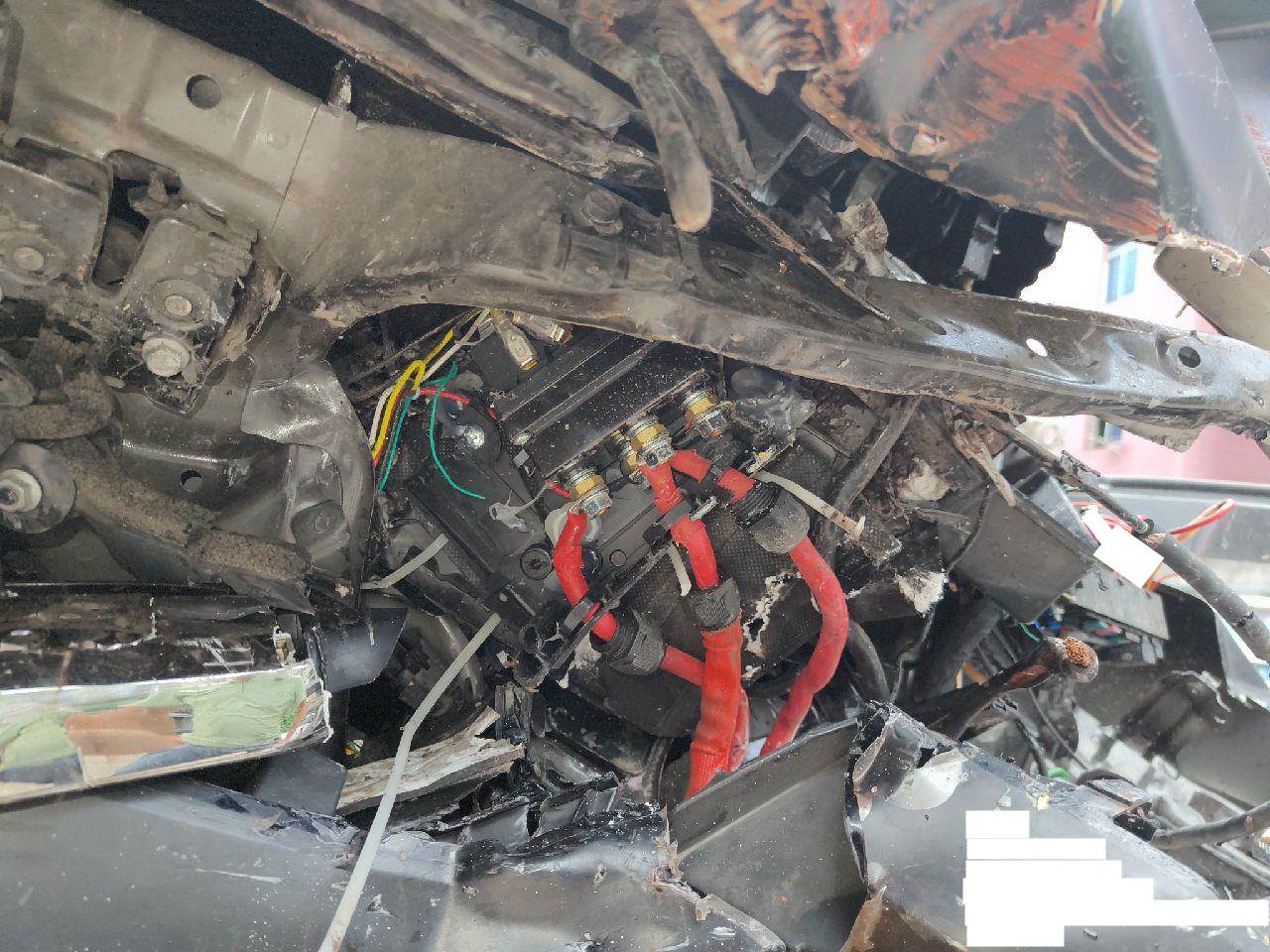 机舱撞击严重,大梁变形,发变拍不到自行判定,底部分动箱和传动轴受损【二询备注:车况不符,钢印号已经撞变形,变速箱和分动箱也撞裂,四驱传动轴也断裂,车身整个左右大梁也变形】