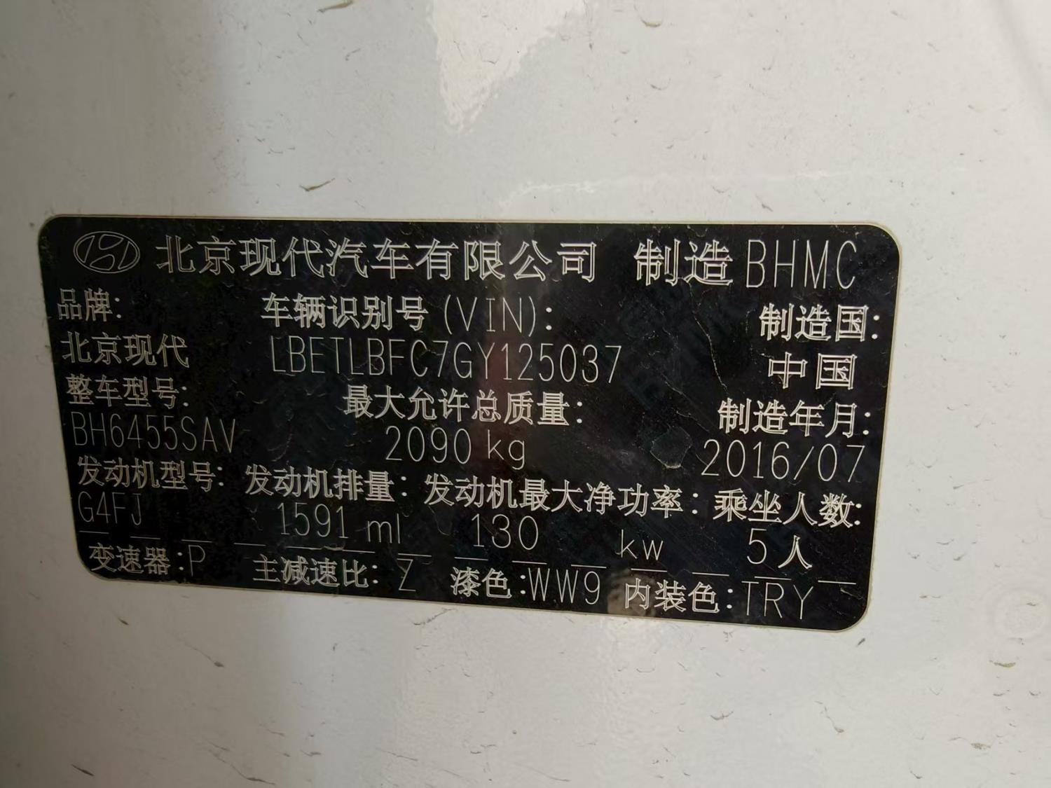 底盘号码 LBETLBFC7GY125037 变速箱类型 自动