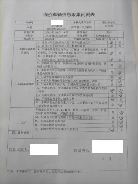 车架号是否受损 使用性质 非营运