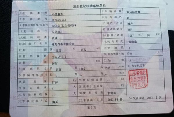 车牌号 鲁****** 品牌 东风标致