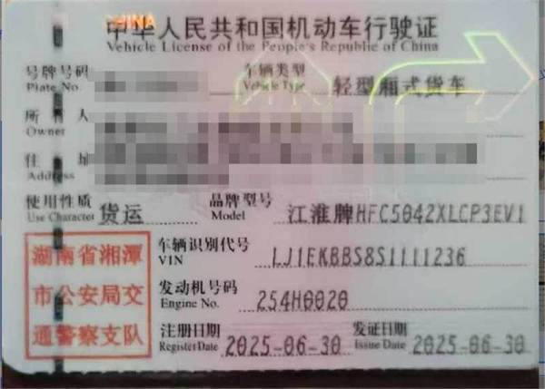 初次登记日期 2025-06-30 车辆名称 江淮牌