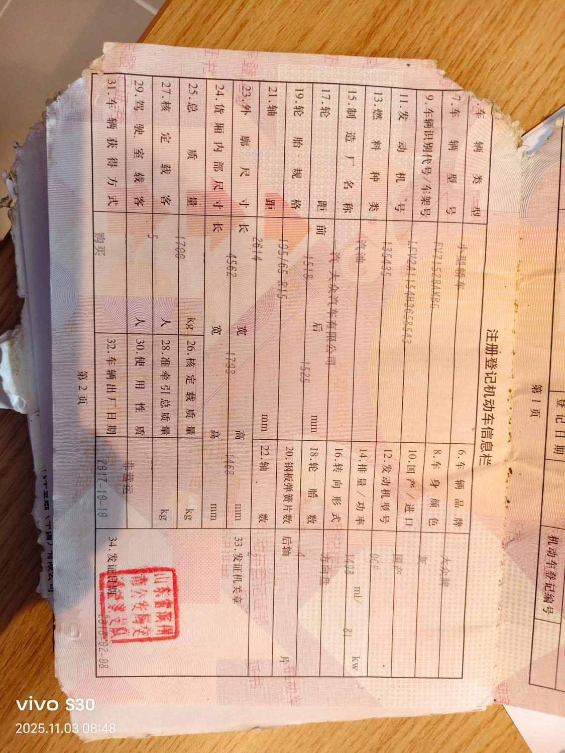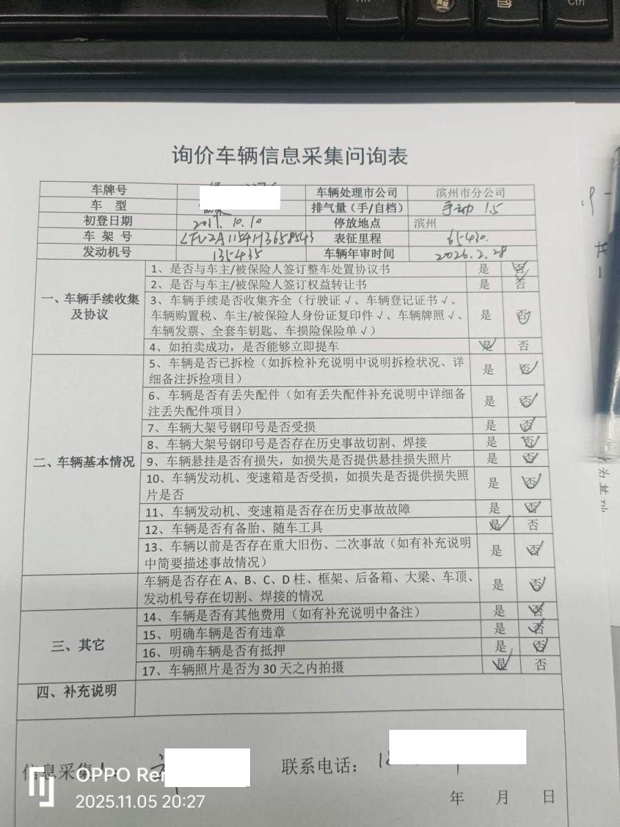 车架号是否受损 使用性质 非营运