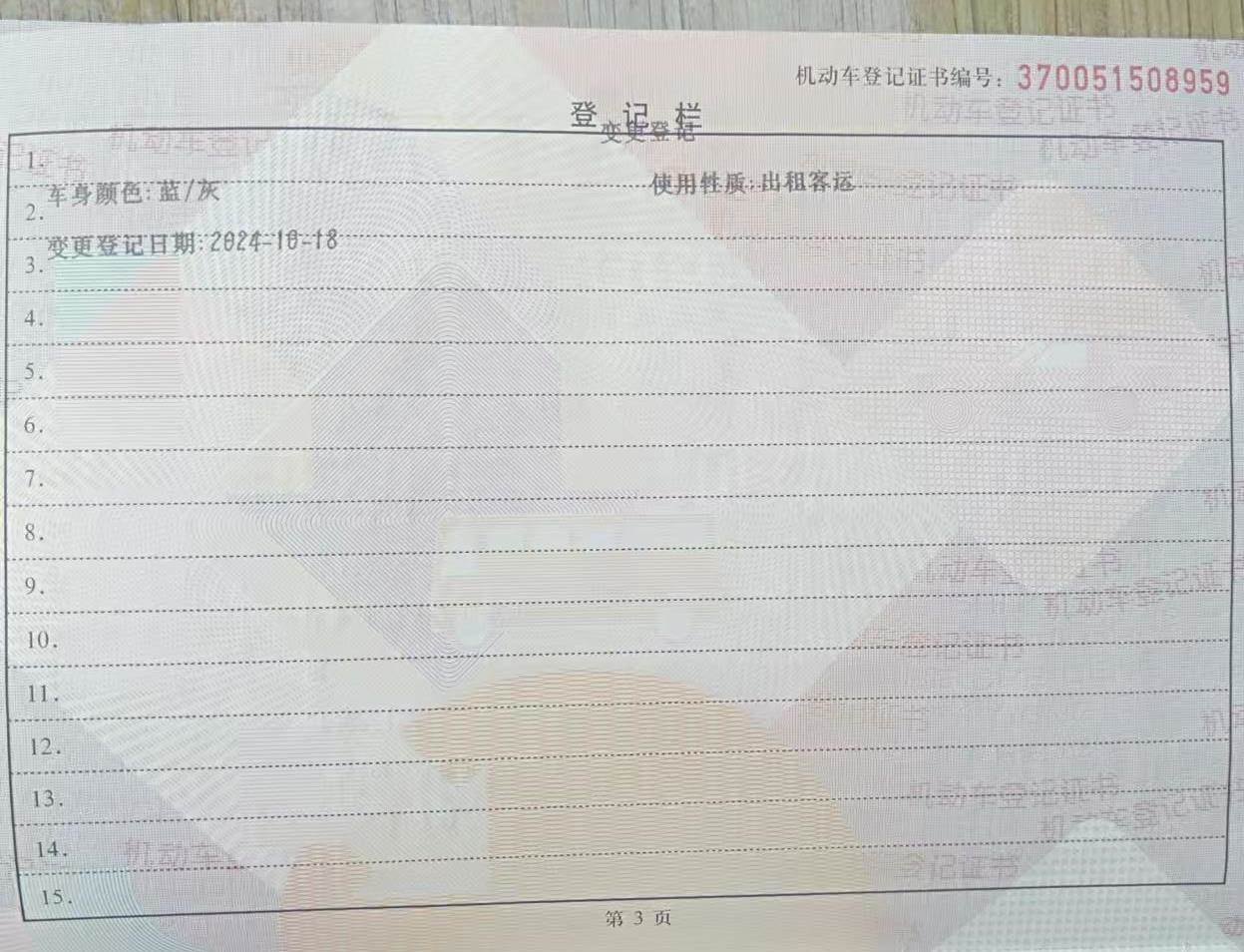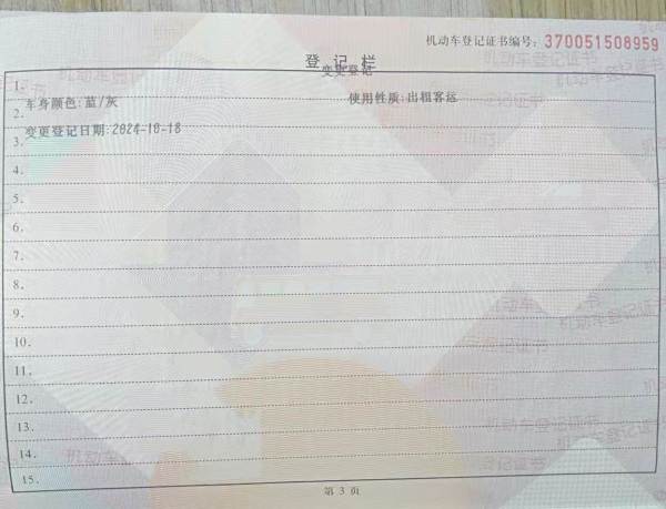车架号是否受损 使用性质 非营运