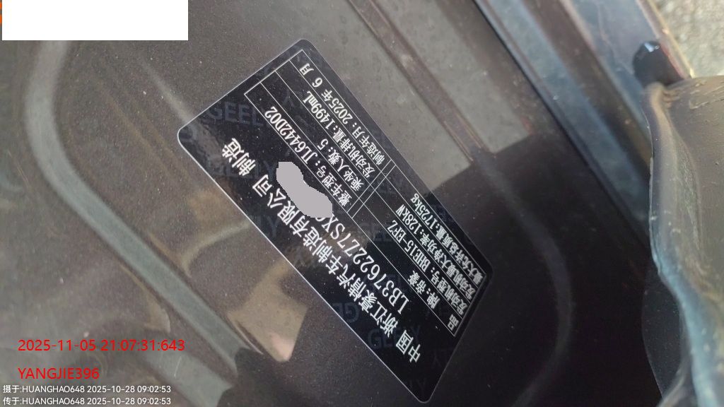 初次登记日期 2025-07-22 车辆名称 吉利汽车 缤越