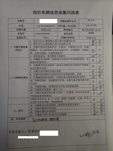 车架号是否受损 使用性质 非营运