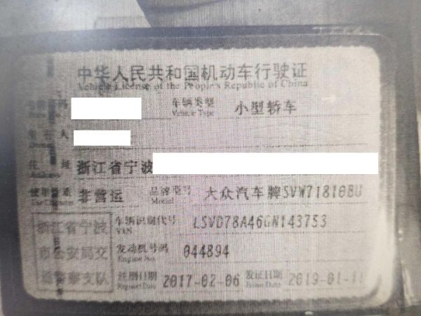 车牌号 浙****** 品牌 大众