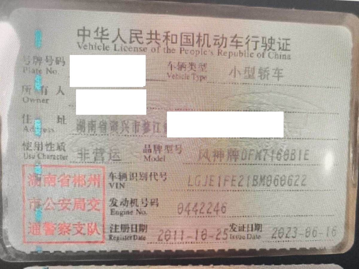 车牌号 湘****** 品牌 风神