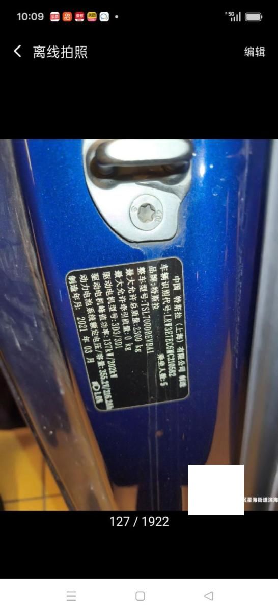 初次登记日期 2021-03-24 车辆名称 特斯拉 Model