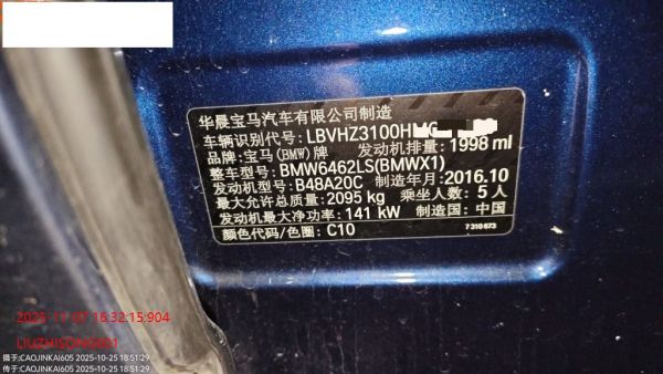 初次登记日期 2017-02-04 车辆名称 宝马X1