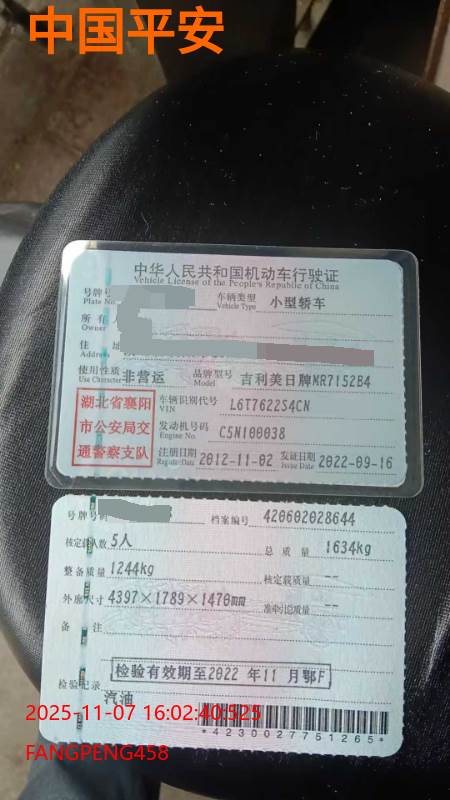 车牌号 鄂****** 品牌 吉利