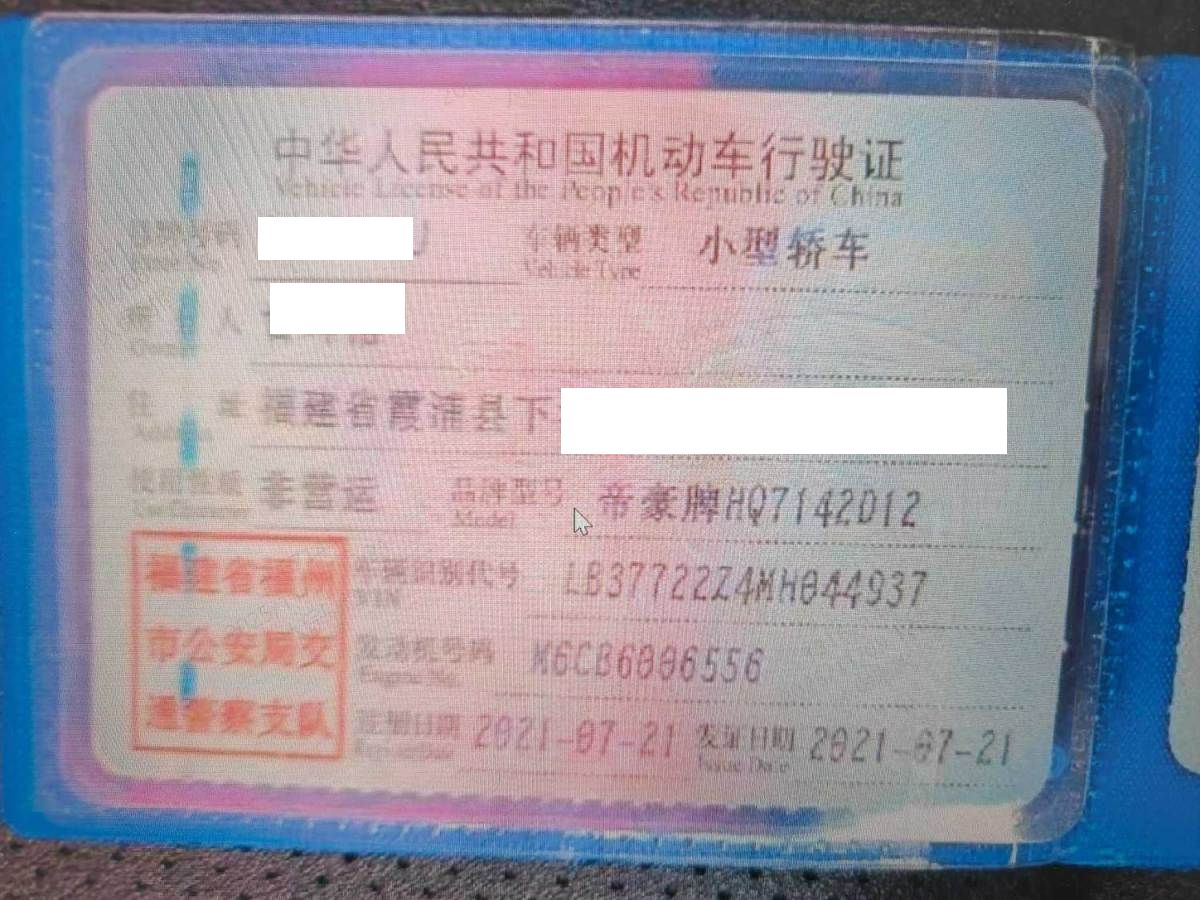 初次登记日期 2021-07-21 车辆名称 吉利汽车 帝豪S