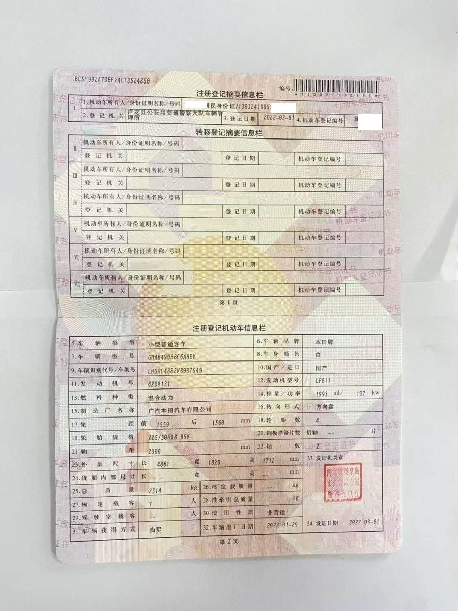 车牌号 冀****** 品牌 本田