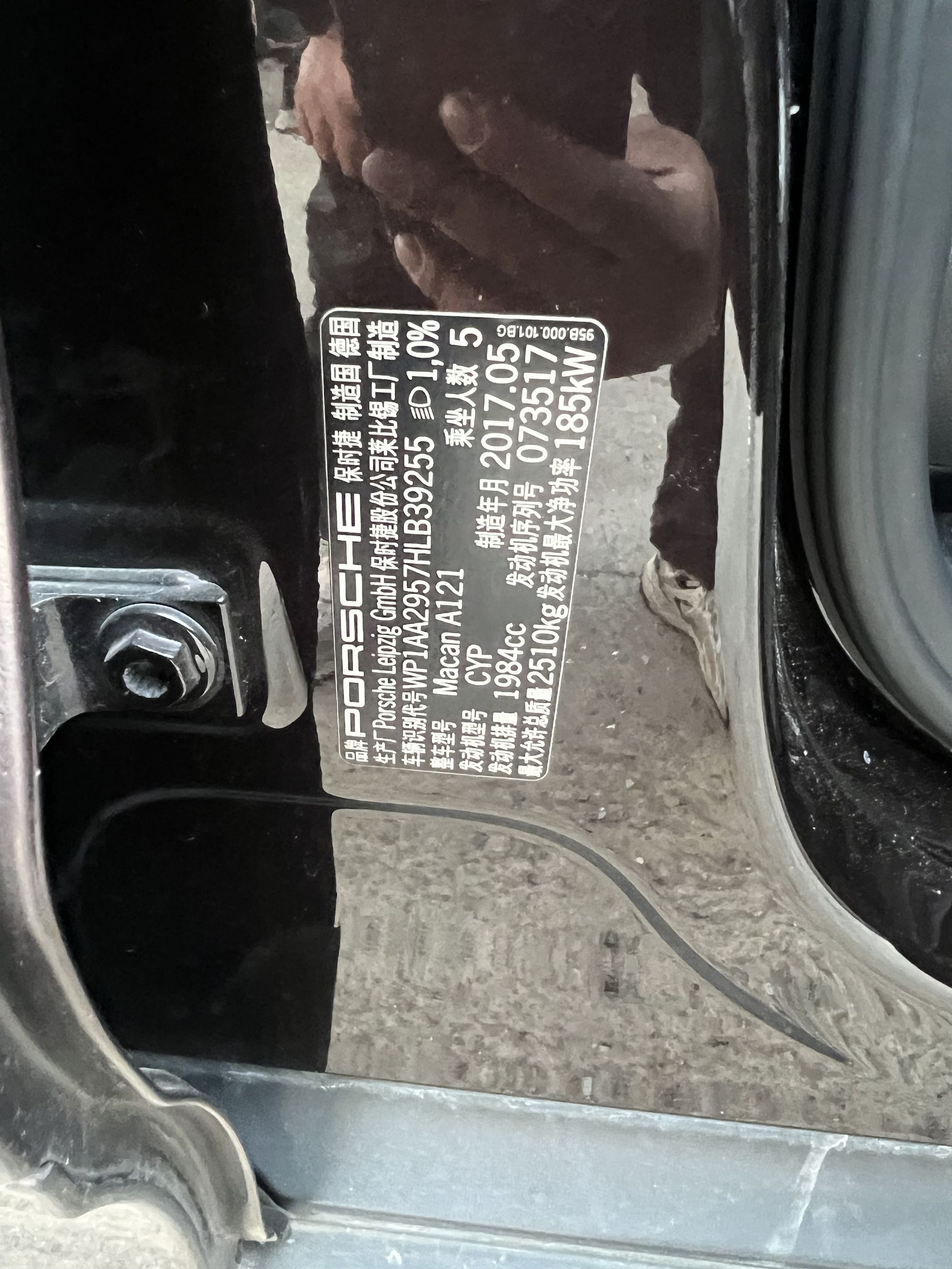 底盘号码 WP1AA2957HLB39255 变速箱类型 自动