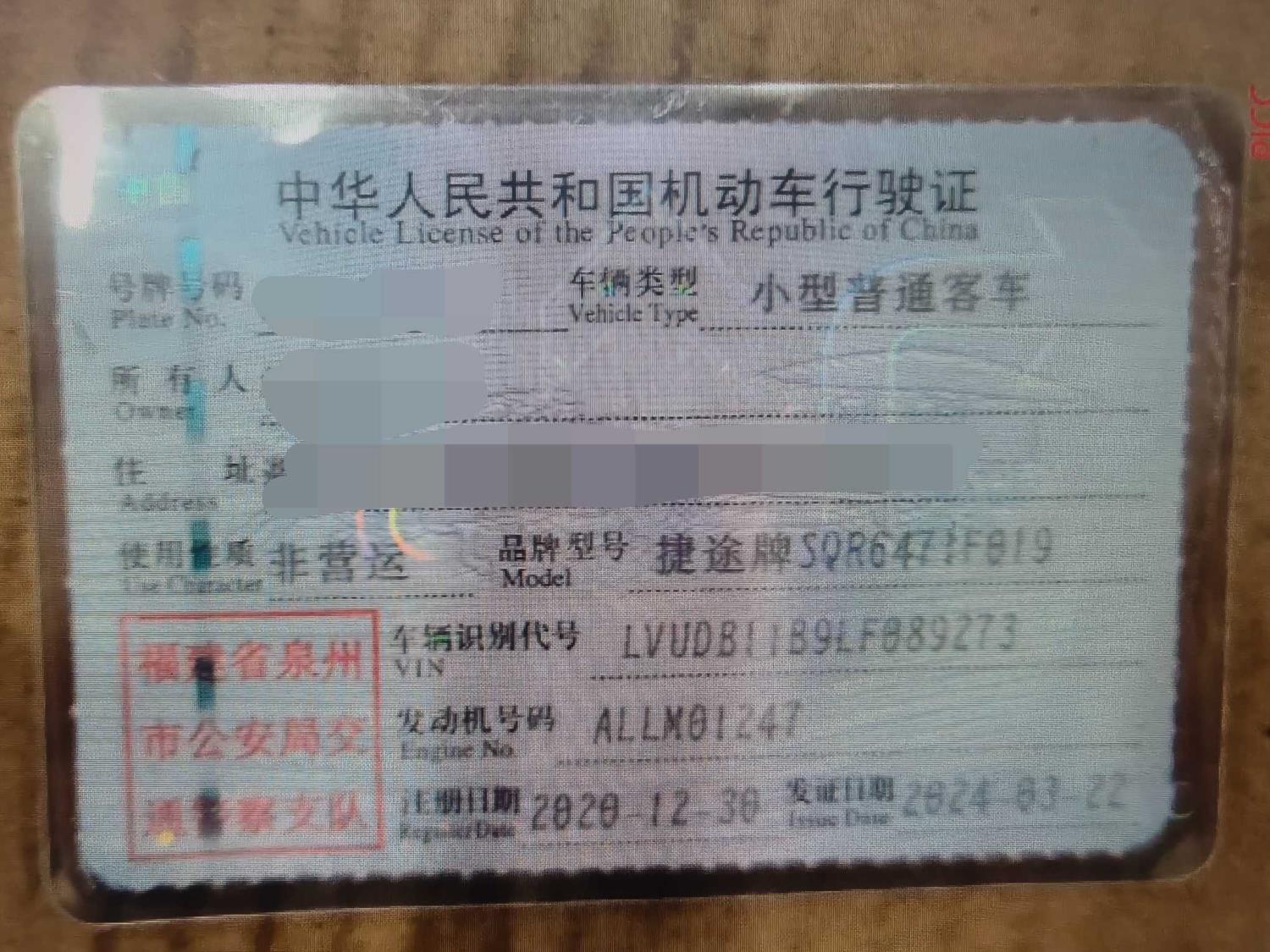 车牌号 闽****** 品牌 捷途