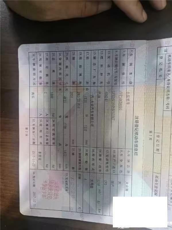 初次登记日期 2017-11-23 车辆名称 大众 速腾