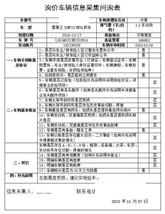 车架号是否受损 使用性质 非营运