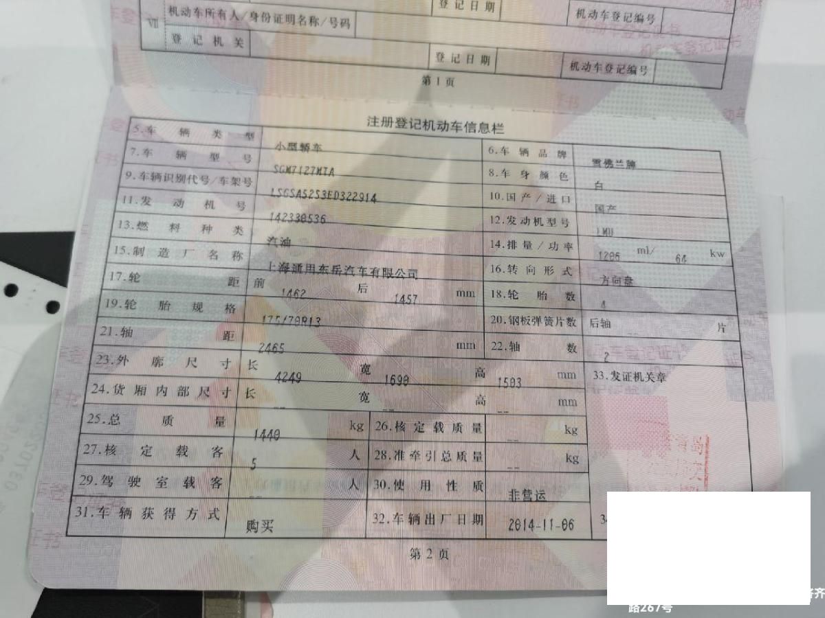 初次登记日期 2014-11-06 车辆名称 雪佛兰