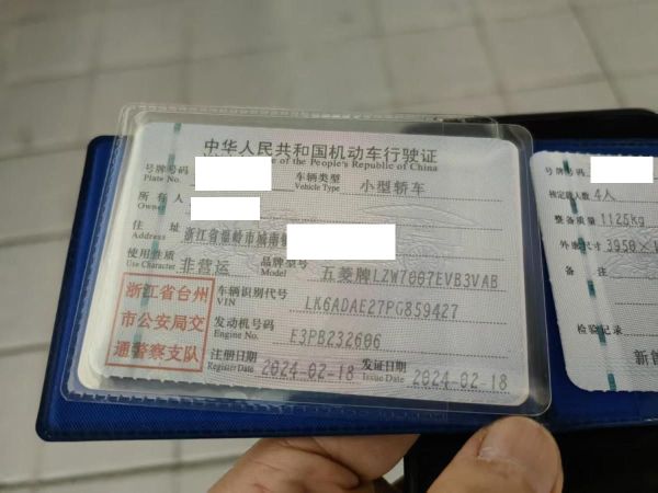 车牌号 浙****** 品牌 五菱
