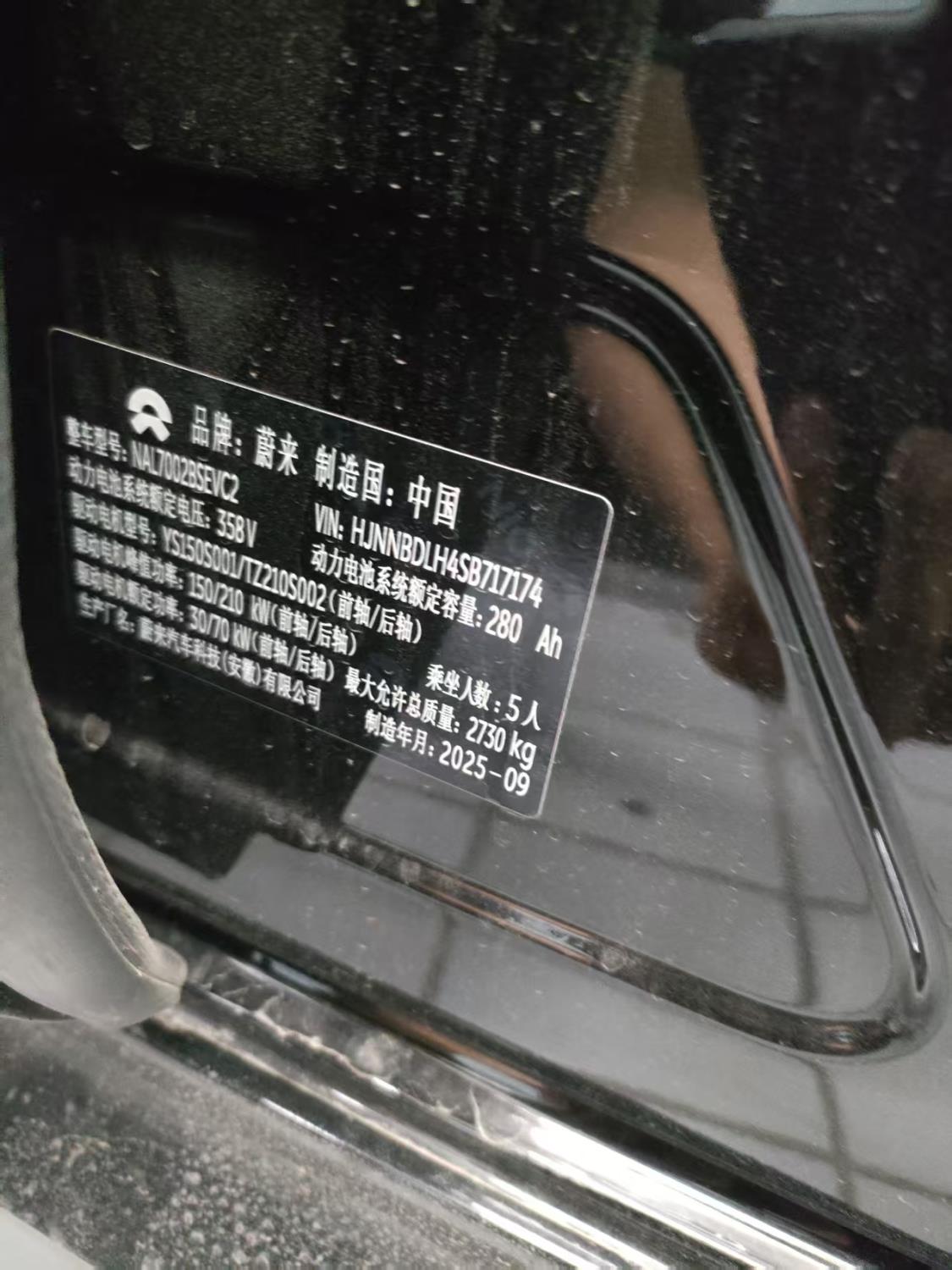初次登记日期 2025-10-20 车辆名称 蔚来牌