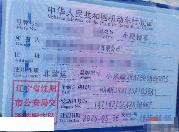 初次登记日期 2025-05-06 车辆名称 小米汽车 小米SU7