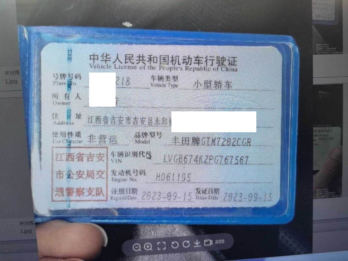 车牌号 赣****** 品牌 丰田