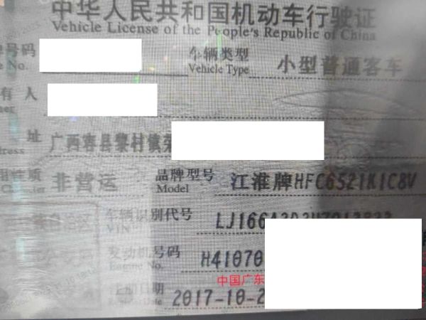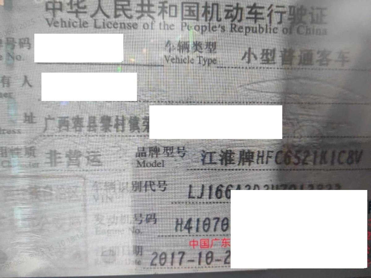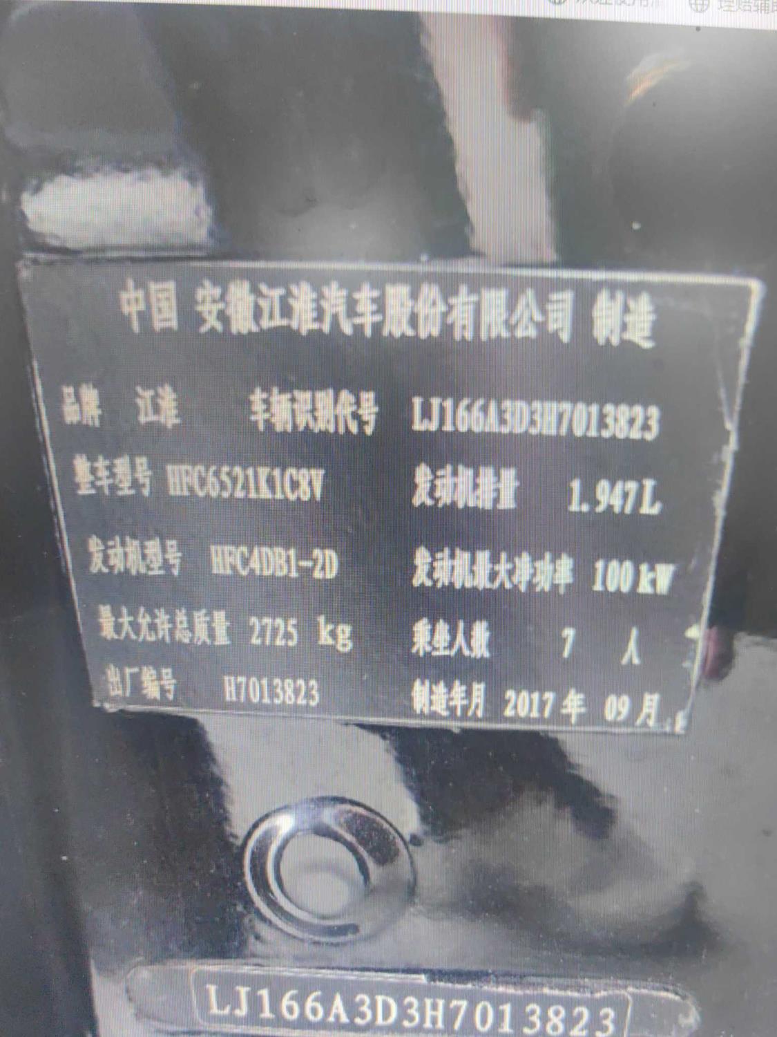 初次登记日期 2017-10-25 车辆名称 江淮瑞风