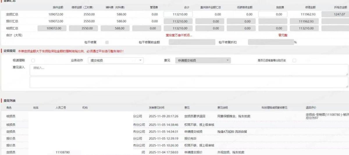 保险金额 ¥119400 预估维修金额 100000