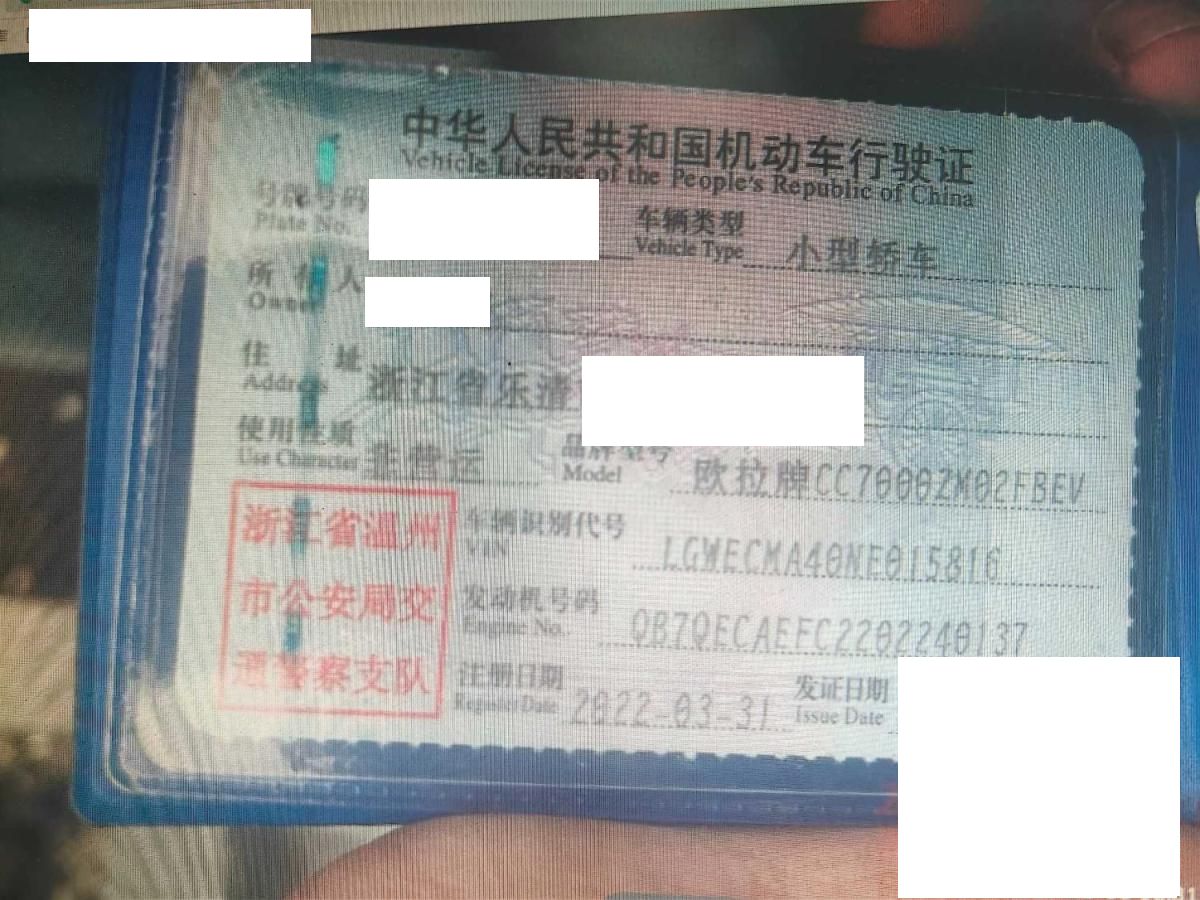 车牌号 浙****** 品牌 欧拉