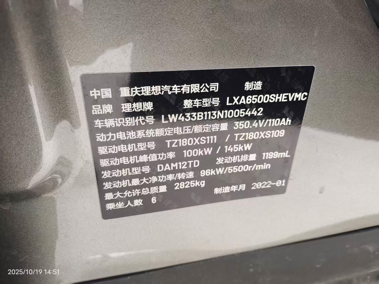 车牌号 冀****** 品牌 理想