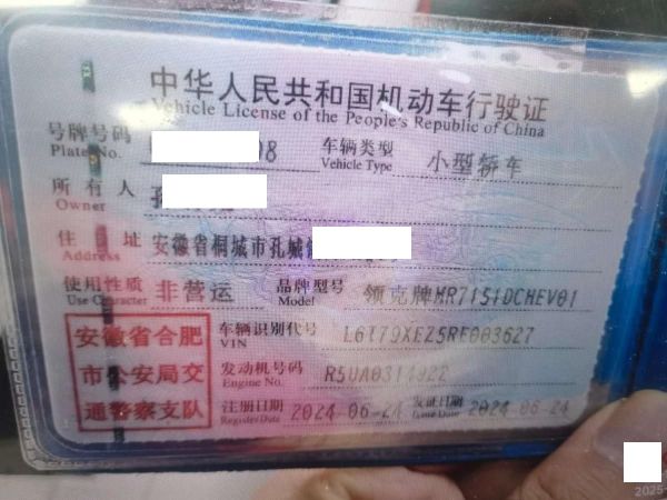 初次登记日期 2024-06-24 车辆名称 领克牌