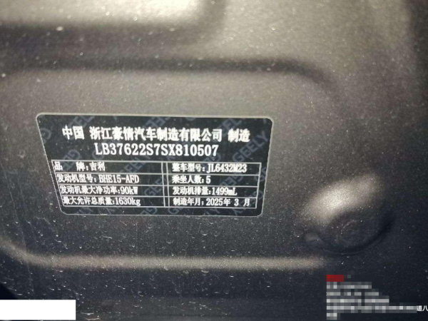 初次登记日期 2025-06-10 车辆名称 吉利汽车 缤越
