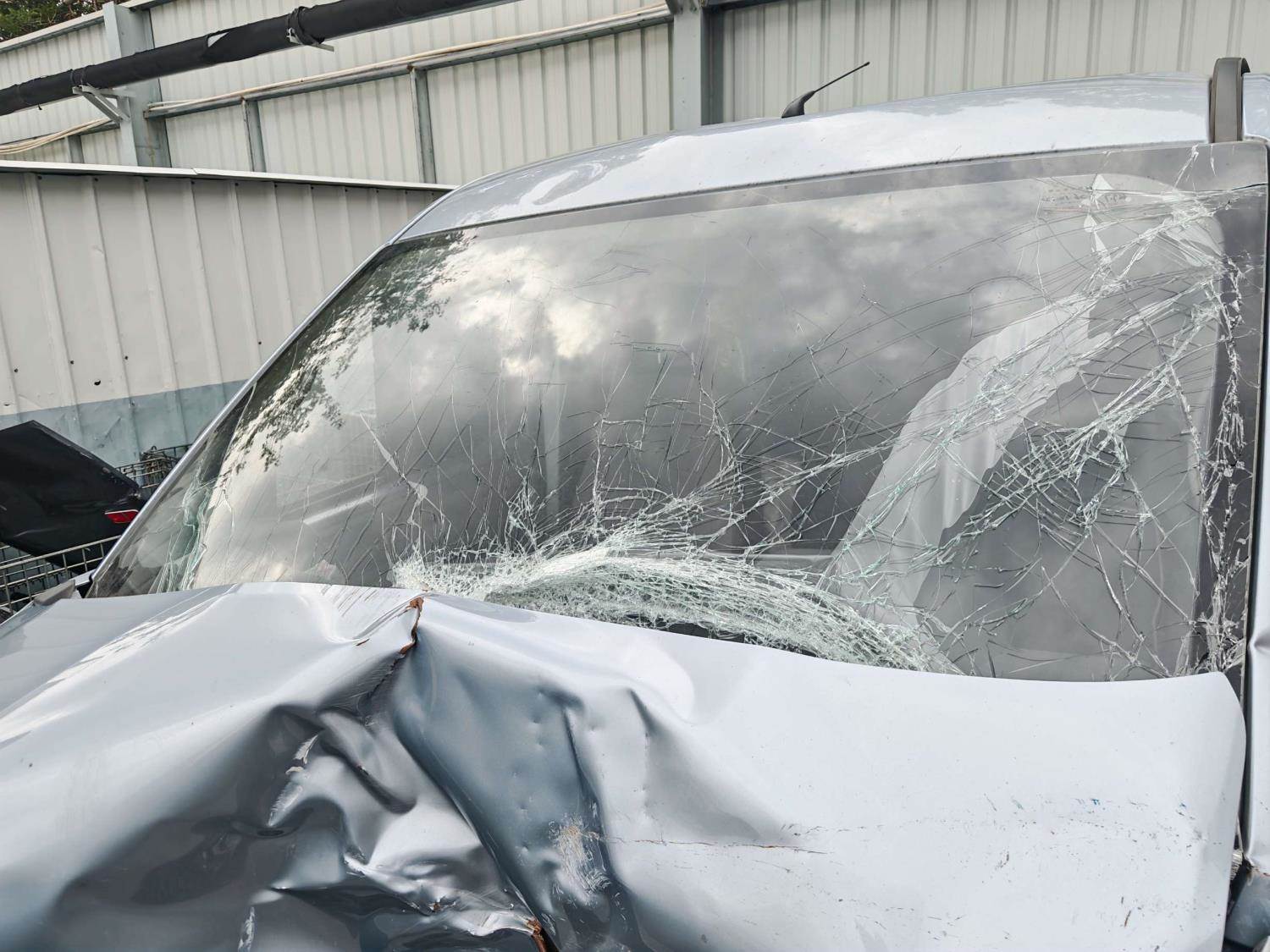 【二询备注:车顶变形,防火墙顶穿了,左侧减震包后侧撕裂,电控单元破损】