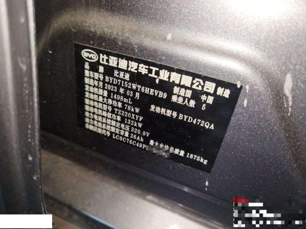 初次登记日期 2023-03-23 车辆名称 比亚迪 秦PLUS