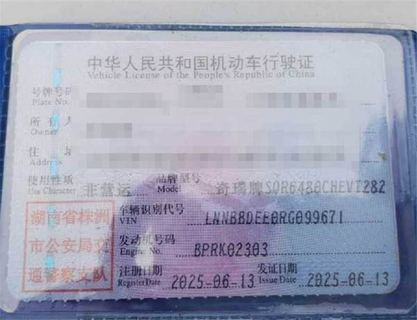 初次登记日期 2025-06-13 车辆名称 奇瑞风云
