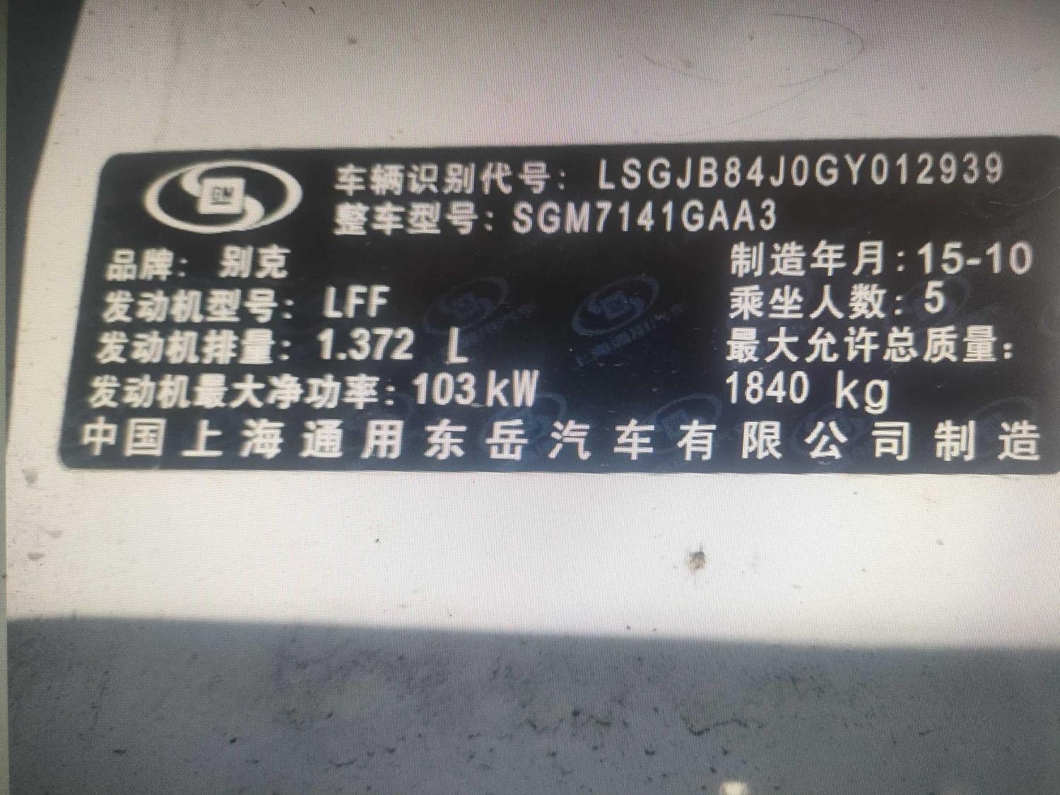 底盘号码 LSGJB84J0GY012939 变速箱类型 手自一体