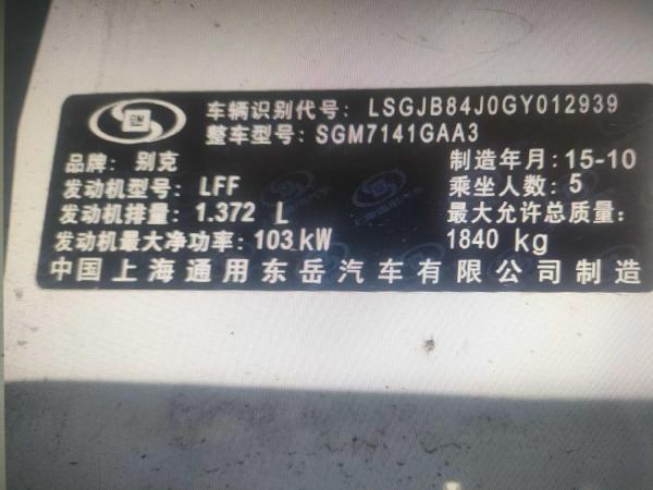 初次登记日期 2015-11-06 车辆名称 别克 昂科拉