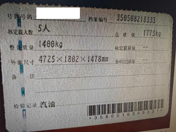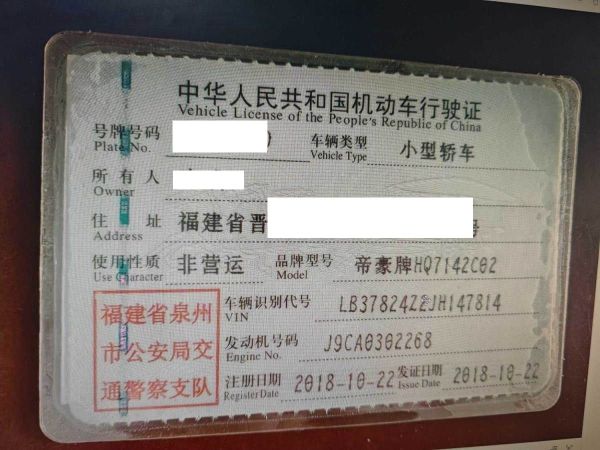 车牌号 闽****** 品牌 吉利