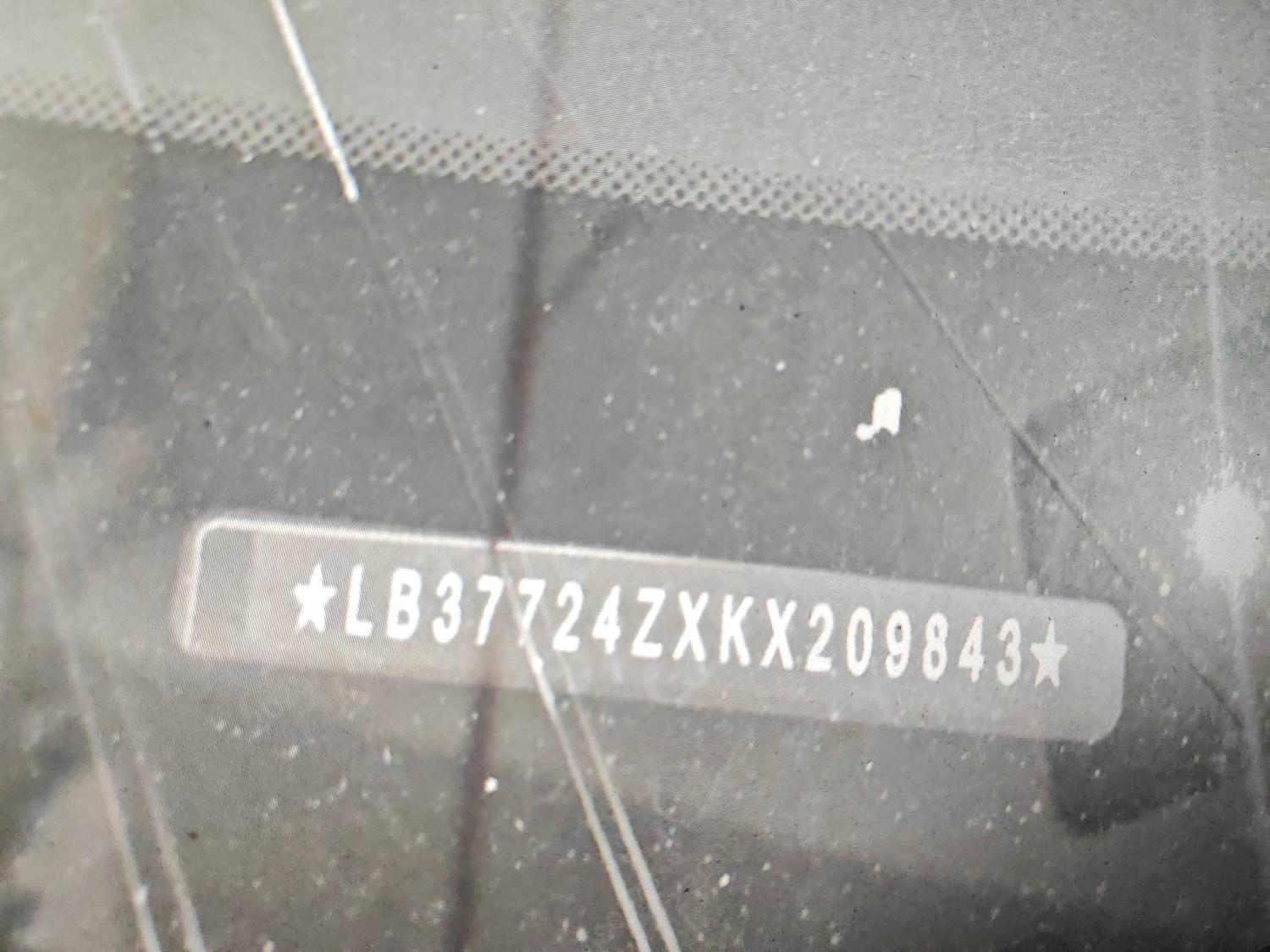 底盘号码 LB37724ZXKX209843 变速箱类型 自动
