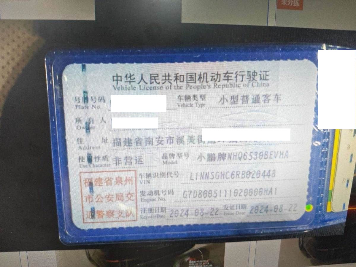 初次登记日期 2024-08-22 车辆名称 小鹏牌