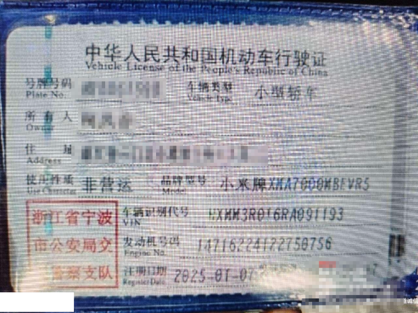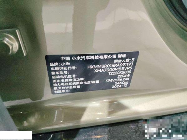 初次登记日期 2025-01-07 车辆名称 小米汽车