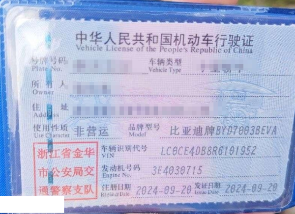 车辆归属地 浙江省金华 车辆停放仓库 浙江省金华